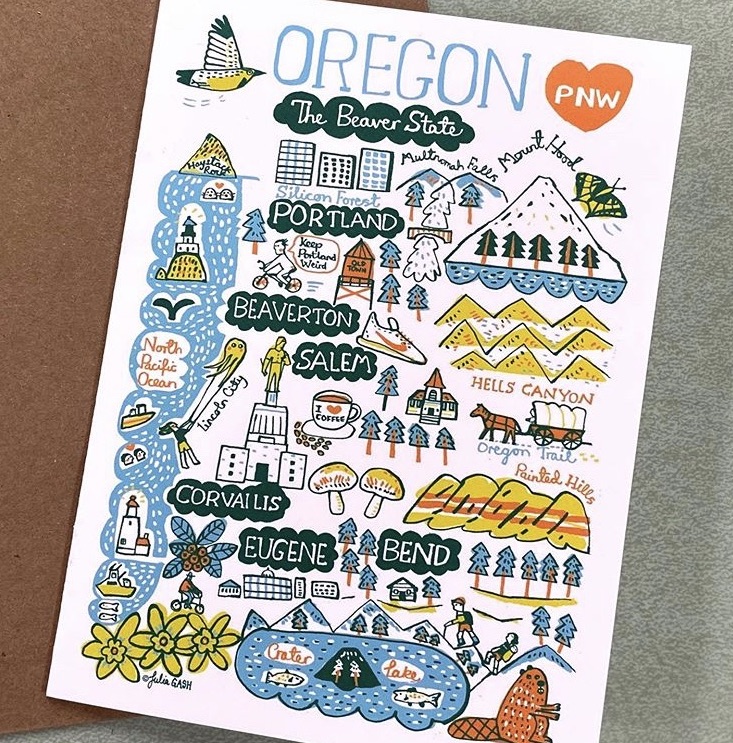 Julia Gash is a British artist and map maker extraordinaire. She creates whimsical illustrations of locations, printed onto beautiful products that connect with people around the world, bringing a place that's close to their hearts, into their homes.
