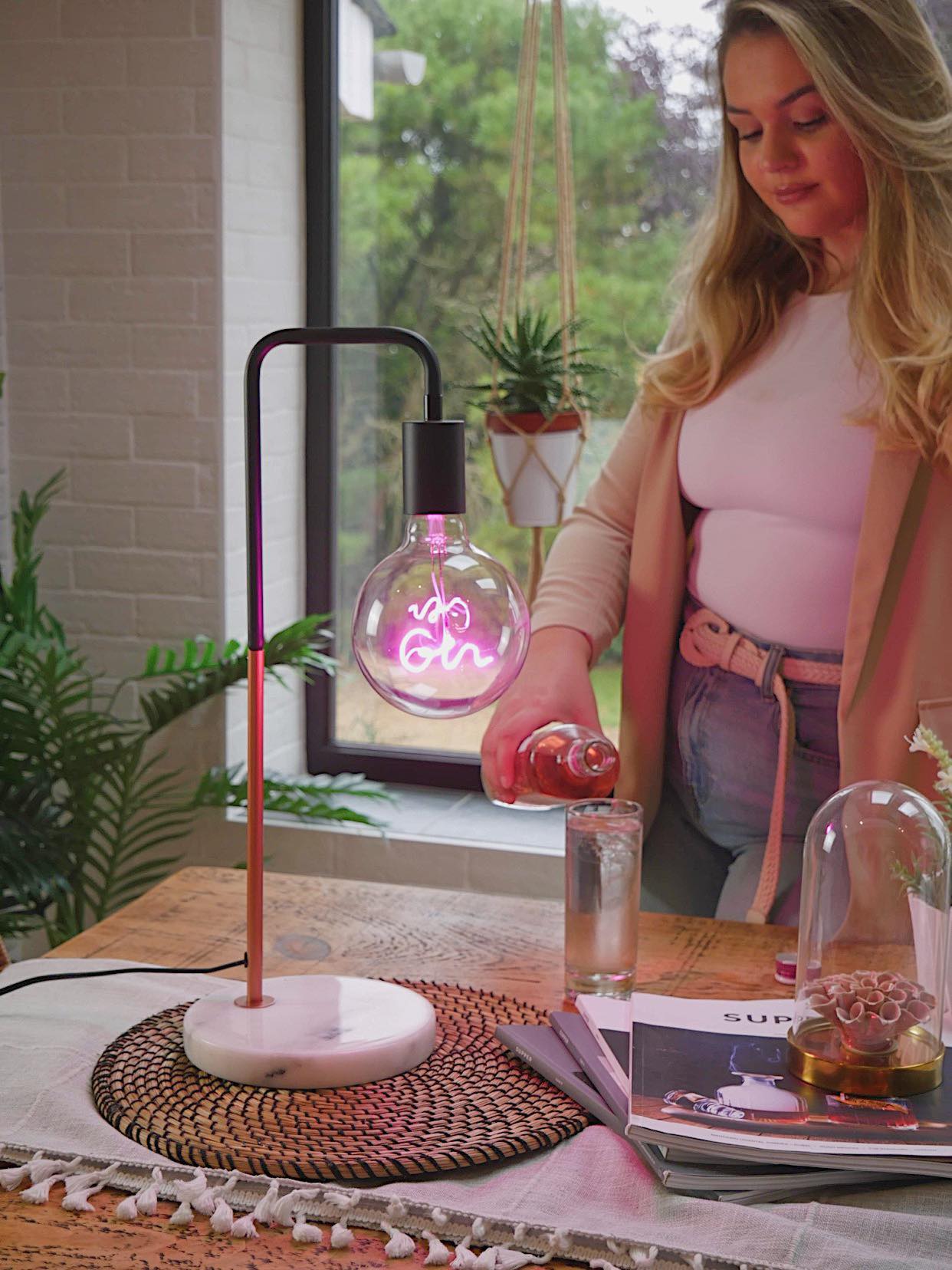 A totally unique and exciting product that is unlike anything else on the market today. Back in 2018 Mark and Kristian, a father & son team had an idea after seeing a growing popularity in LED Neon signs. They wanted to offer something different within the neon market, they had a "Light bulb “moment, to create the Bright Ideas Collection. Starting with just 9 designs at the Home & Gift Harrogate show in 2019, it was an instant hit with customers selling over 10,000 units within its first year. During lockdown the product evolved, growing to around 30 different creative word designs and by the end of this year there will be a total of over 50 designs, including 3 shape designs, 12 new double word and 2 Christmas word designs. The fitting used is an E27 Edison screw fitting, this is one of the most stand fitting on the market, and the bulbs are dimmable allowing the customer to choose the brightness of the light to suit their environment or time of day. Steepletone also sell a variety of different light fitting options including a doubled headed desk lamp, a floor lamp, festoon string light fitting and celling pendent fittings. Some of our bestselling words are : LOVE, DREAM, HOME, KIND, GIN, WINE, GLAM, and many more!