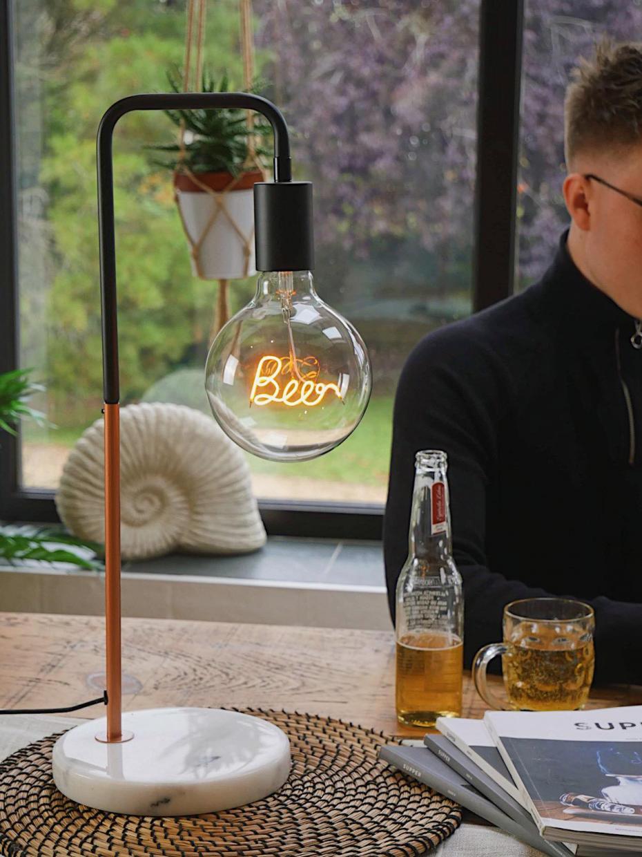 • LED Neon Text Bulb & Desk Lamp with Marble stone base