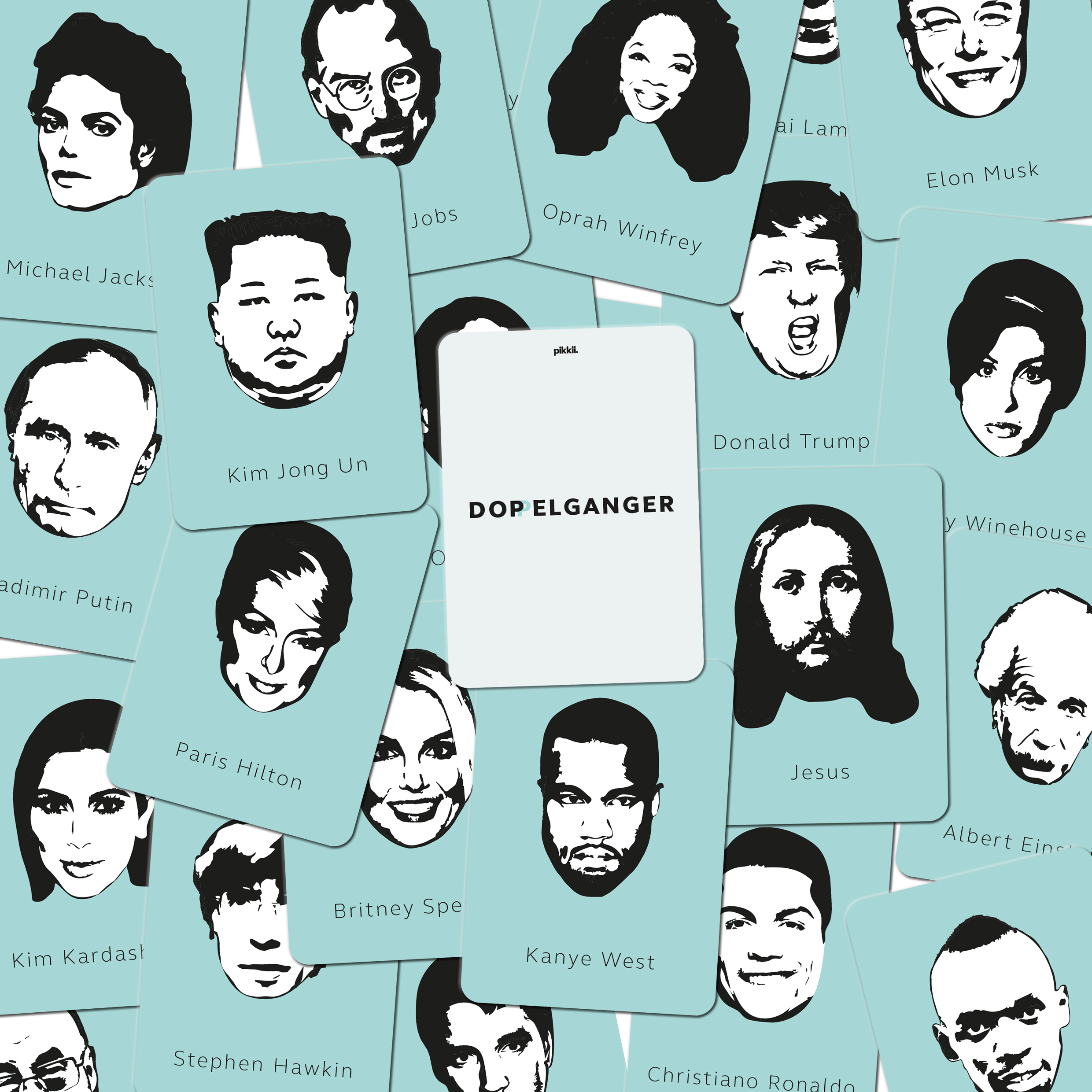 Doppelganger is the hilarious party game of comparing your friends and family to the famous and infamous. Quick to learn & easy to play, players vote for who they think is most like the celebrity on the card. Who’s your Doppelganger?