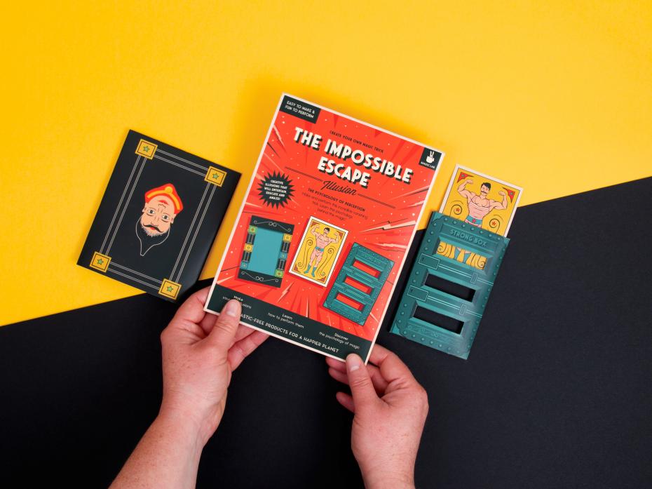 When making this range we researched the magic industry and realised there was a lot of plastic that went into the existing kits and this was a problem we wanted to address. Each trick includes a QR code on the back of the pack, which when scanned will take you to our magic webpage including three films. The first film shows how to make the trick. The second film shows how to perform the trick and lastly, the final film features the Doctor of Psychology who talks about how a person’s mind can be tricked by each illusion. Amaze your friends with these affordable easy-to-build kits and perform an original performance, created by professional magicians.