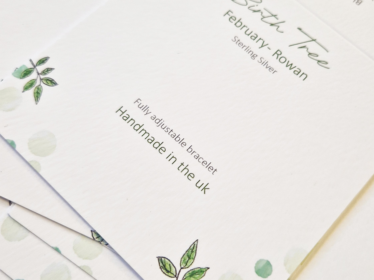 New handmade Birth Tree sterling silver bracelet cards. Inspired by the calendar of trees, each month is represented by its own original silver leaf design, presented with a FSC mix card & recyclable envelope using our own original artwork.