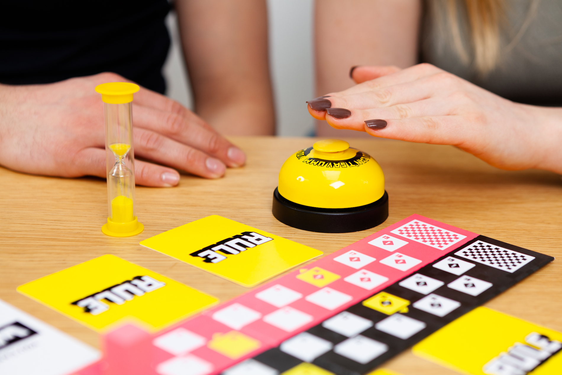 Describing ridiculous word combos for your team to guess before the time runs out. Sounds easy but the twist is you can’t say “umm”, “err” or make any other verbal stumble. If you do, the other team ding the pink bell to claim a point.