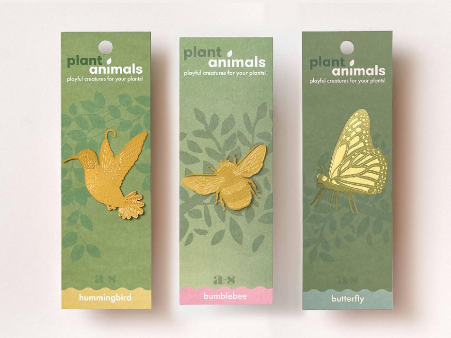 Celebrating the pollinators in our gardens all over the world, the pollinator Plant Animals are a bumblebee, butterfly and hummingbird.