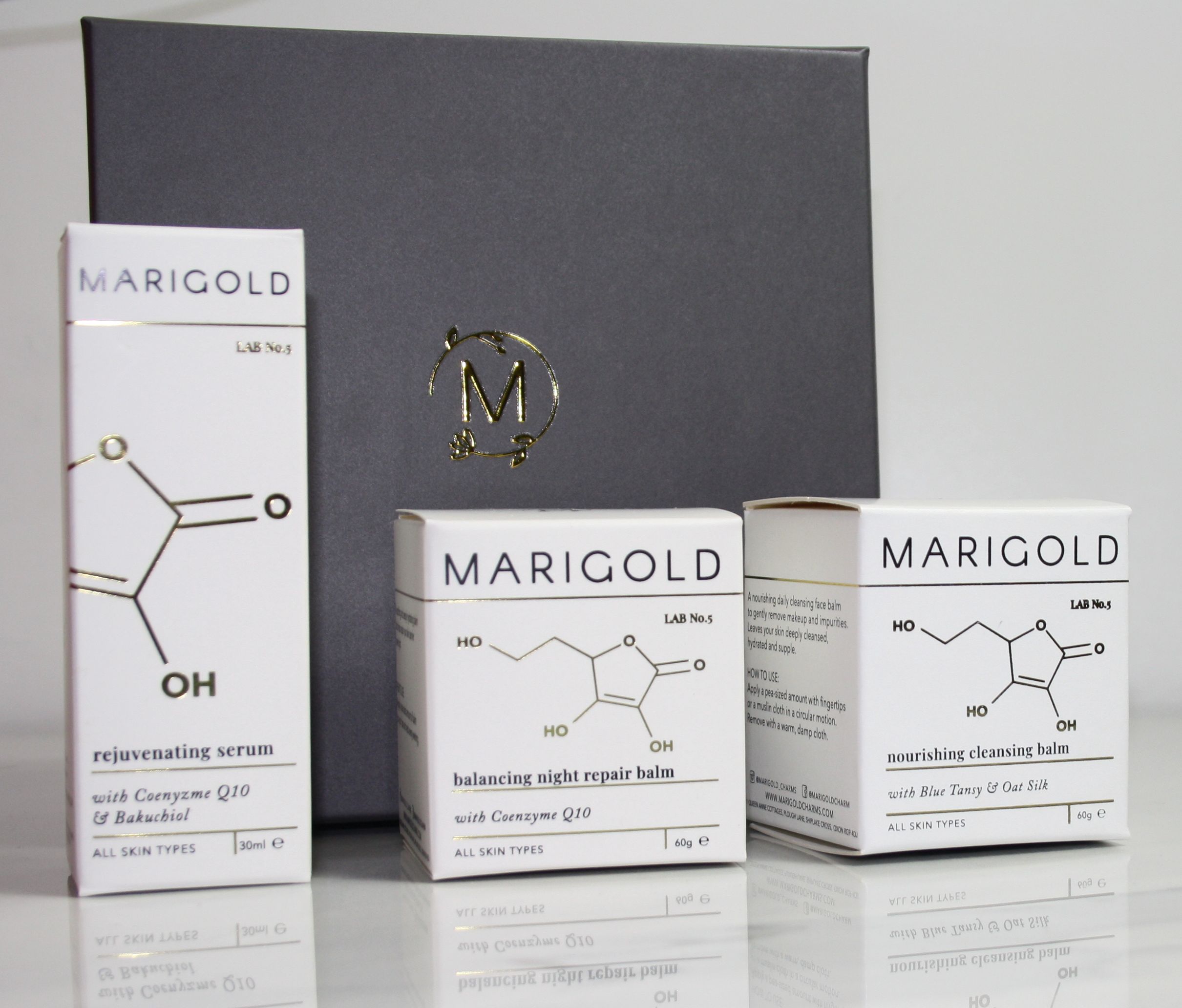 The products in the Glow Revival Skincare Set have been carefully formulated to restore the skin’s natural radiance. Starting with the Award nominated Nourishing Cleansing Balm, a rich, melt-into-skin formula that dissolves makeup and impurities while maintaining essential moisture. This is followed with our Revitalising Face Serum, a concentrated blend of skin-loving ingredients that boosts hydration, supports firmness, and enhances a healthy glow. Finally, our Balancing Night Repair Balm, a soothing overnight treatment that replenishes, calms, and strengthens the skin barrier while you sleep. Wake up to a complexion that feels refreshed, balanced, and beautifully luminous.