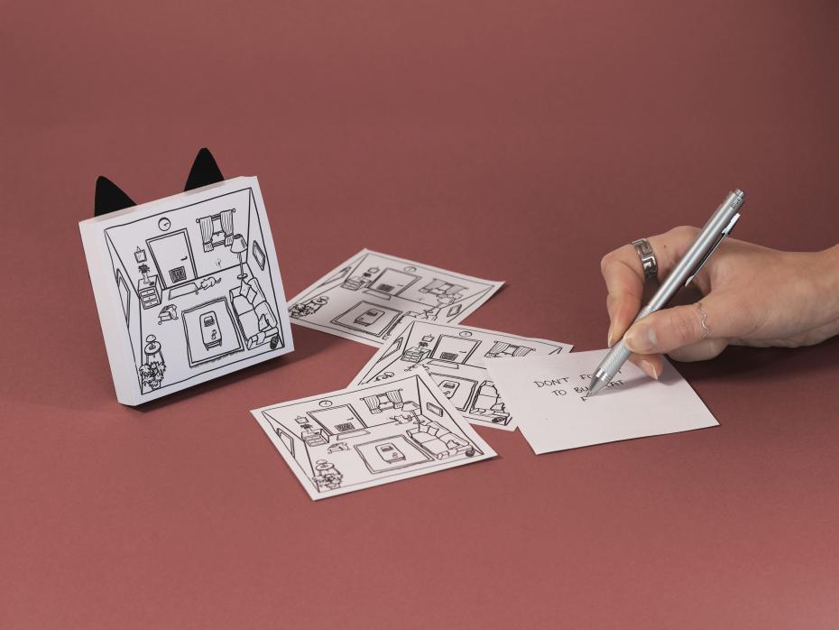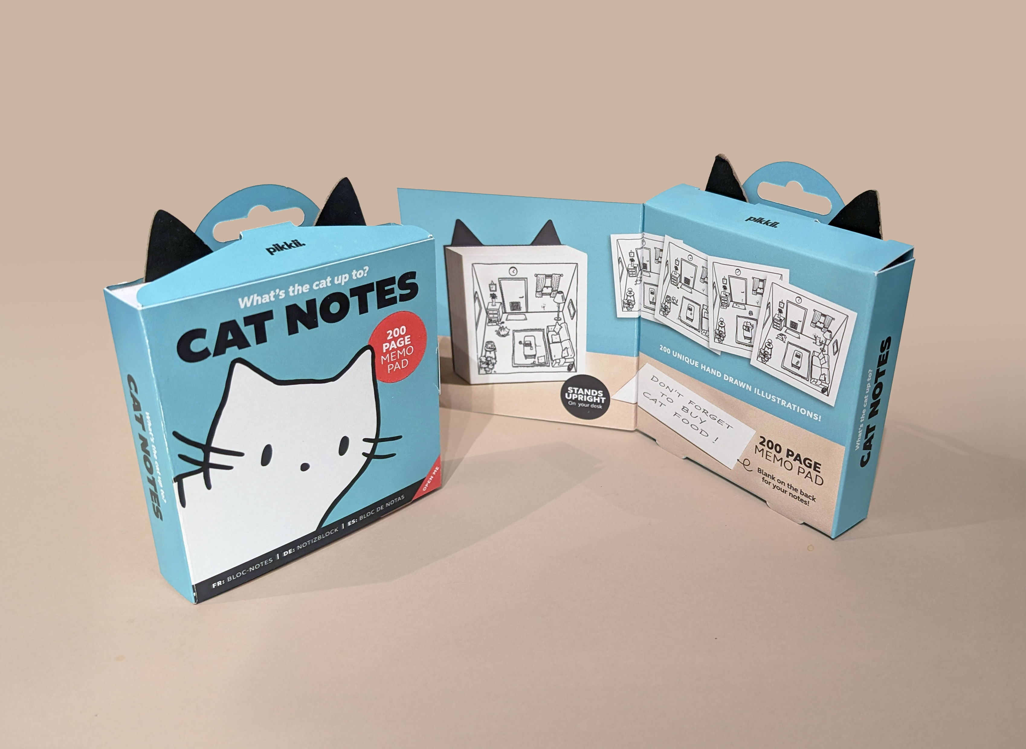 Make everyday notes more fun with this freestanding 200 page memo pad (with cat ears). On the front of each sheet, you'll spot the cheeky cat up to something new, and often causing mischief. Once you've found him, flip the page to jot down your remin