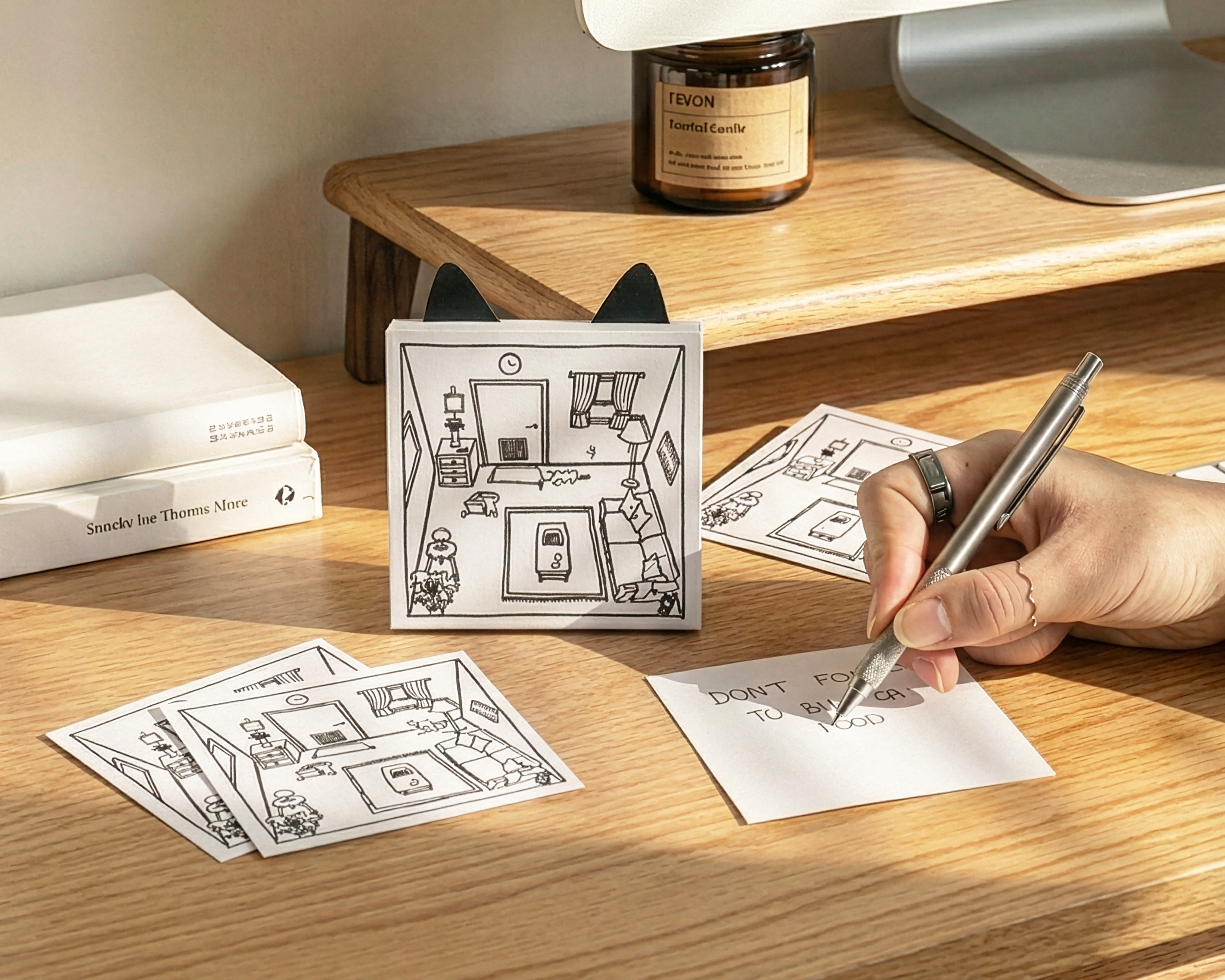 Bring a little personality to your paperwork and let a mischievous cat make every note a moment to enjoy.