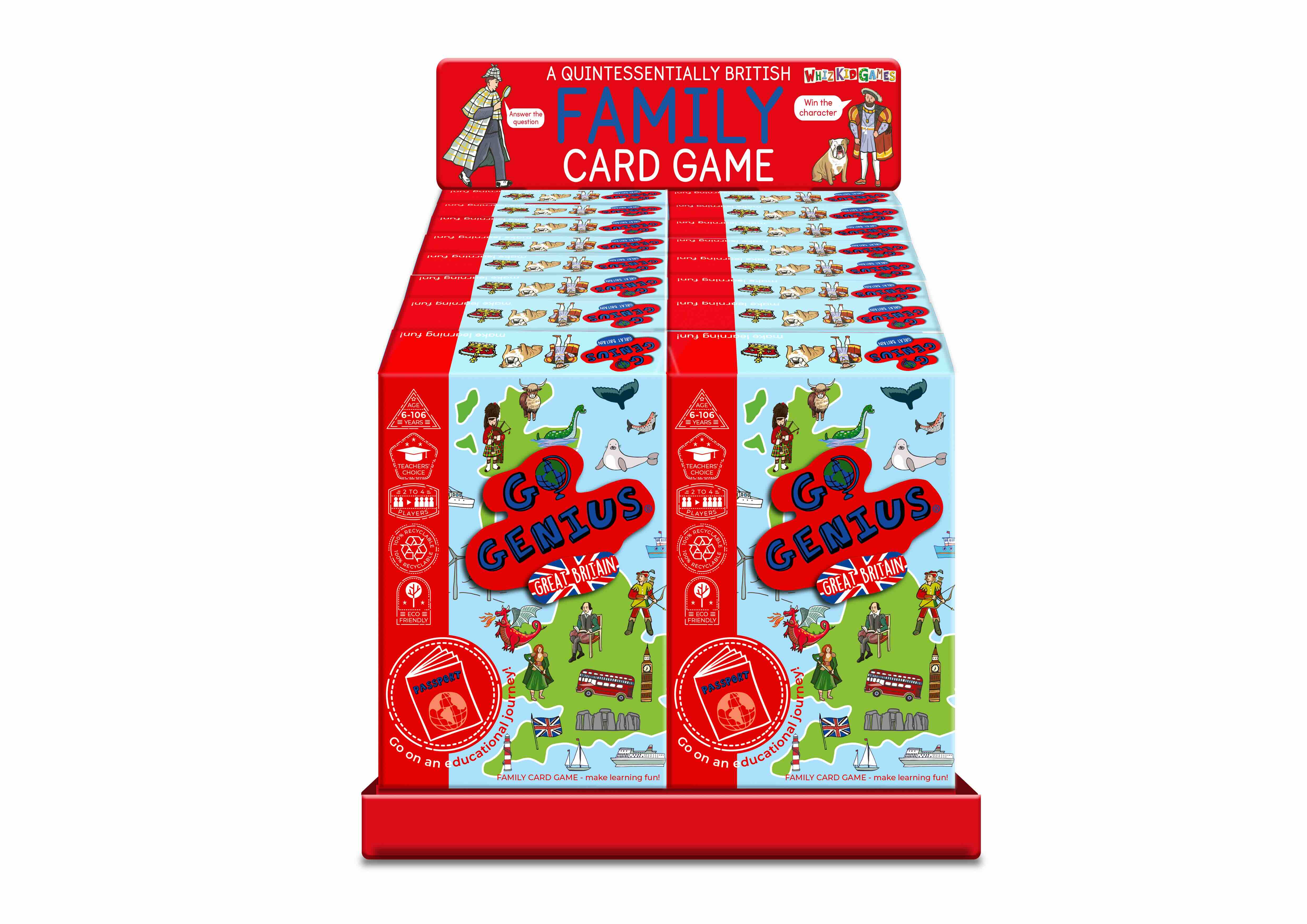 Players take an educational trip round Blighty with this splendidly British card game for ages 6 to 106! The aim of the game is to score the most points by collecting sets of quintessentially British characters from warrier princesses to wise wordsmiths and brilliant book heros to legendary leaders. Players win the cards by answering tip-top trivia questions about this marvellous country. For example, in which sport would you hear the terms 'short square leg' and 'sticky wicket'? What is cock-a-leekie? And where in London would you find the magical platform 9 3/4? The winner gets to proudly place a genius stamp (included) in their Go Genius passport (also includeded for players to personalise). As well as being packed with fun, facts, and a dash of British brilliance, this game was designed in Britain by great British minds and is responsibly made with sustainable and recyclable materials.