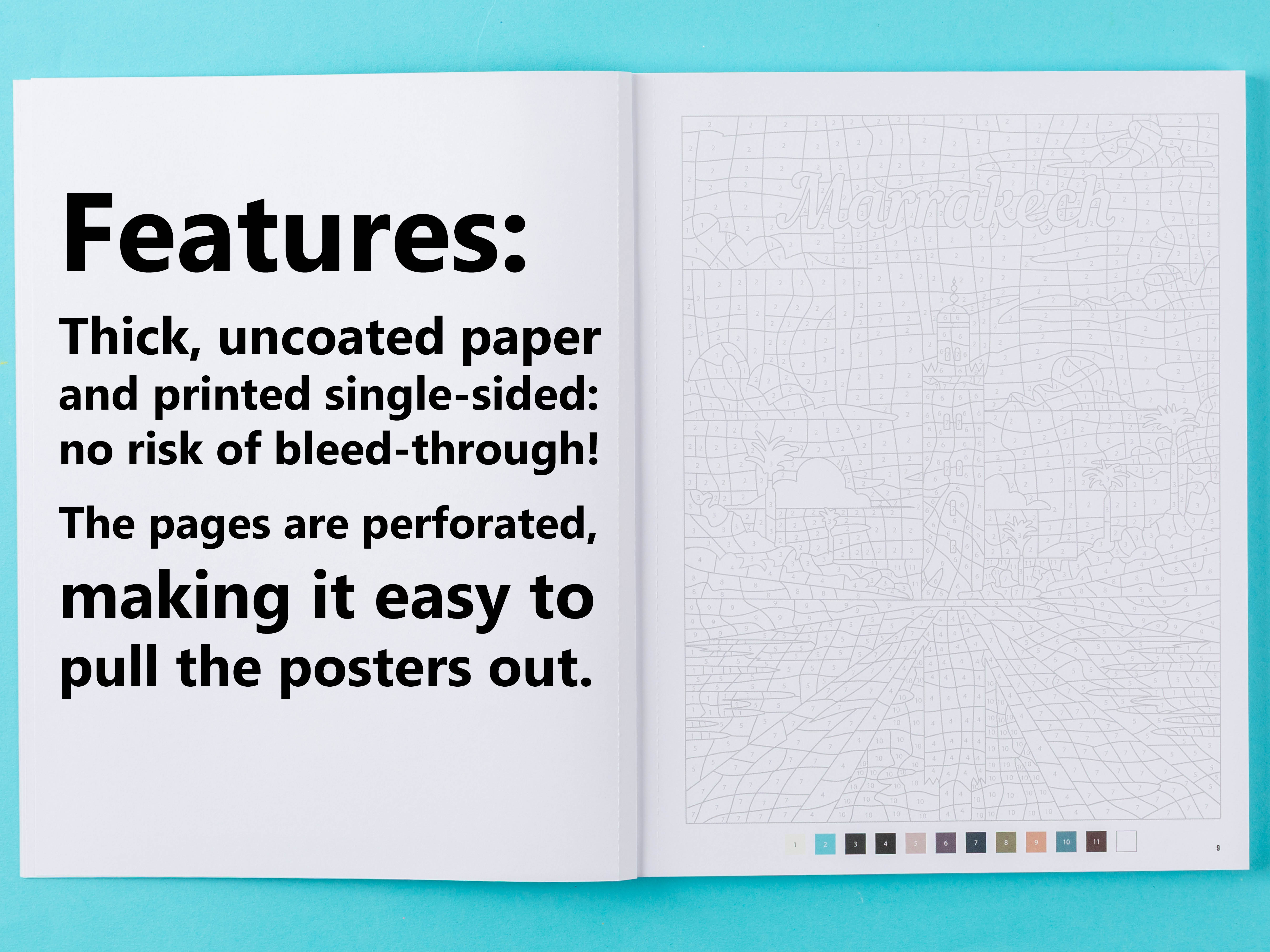 Color by Numbers: Travel is more than just a mystery colouring book. As well as providing the relaxing pastime of colouring, the perforated and premium, thick single-sided pages give the giftee the satisfaction of revealing and owning 40 stunning travel posters which can be proudly displayed or gifted to loved ones.