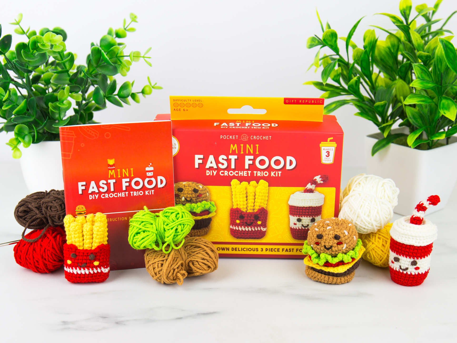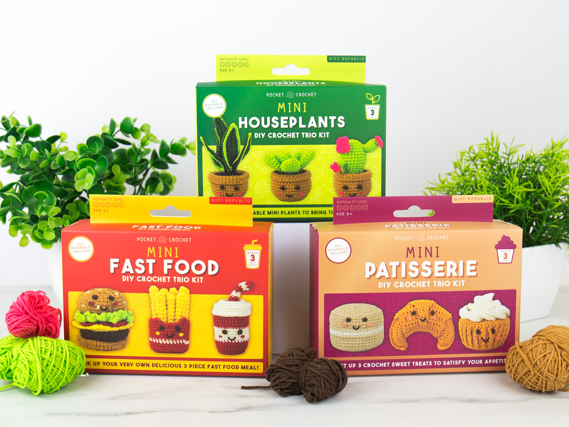 Discover Pocket Crochet – adorable mini DIY kits that let you craft your own tiny crochet characters. Each kit includes everything you need to create three cute crochet designs, from houseplants to patisserie treats and fast food favourites.