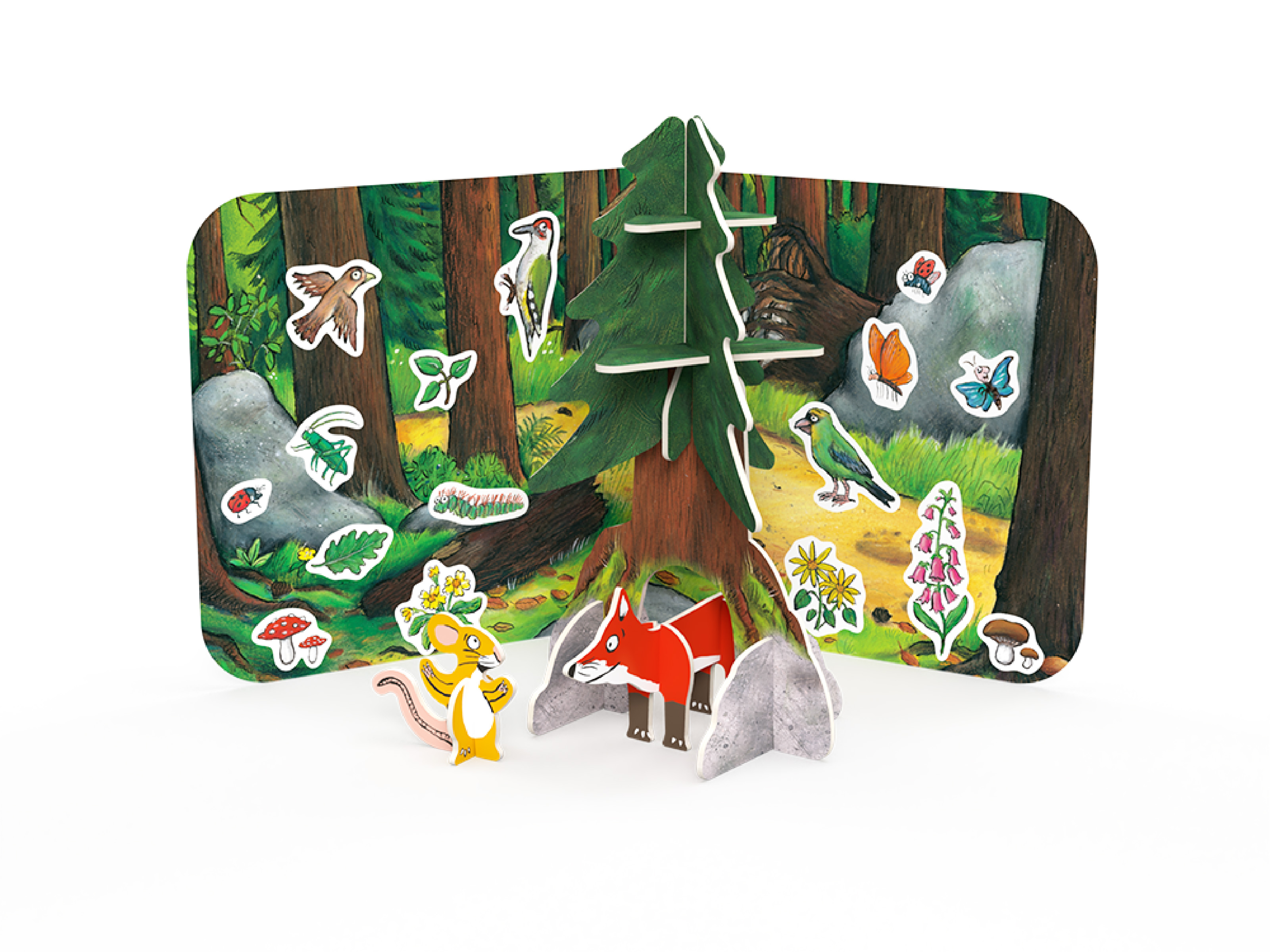 Build and play with The Gruffalo and Mouse. Contains 15 pop-out pieces made from sturdy & sustainable materials, a sticker sheet and a background scene.