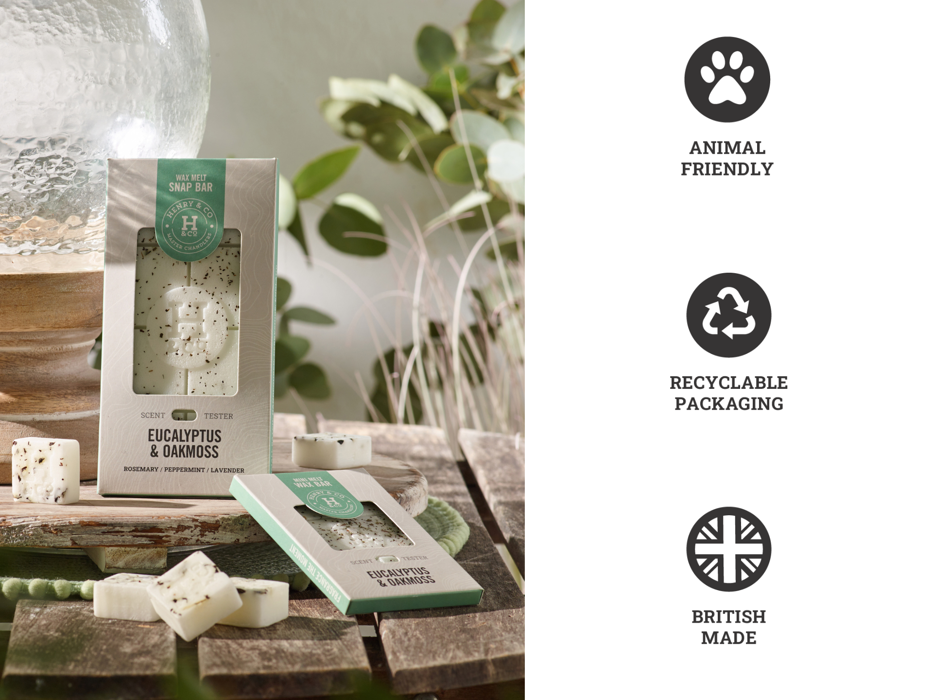 Our Wax Melt Bars are a celebration of fragrance, sustainability, and craftsmanship. Available in two sizes—our Mini Bar (with a burn time of around 24 hours, perfect for discovering new scents) and our Snap Bar (with a burn time of around 56 hours, for long-lasting enjoyment)—each bar is hand-poured with care in our Derbyshire workshop. Made with a premium blend of natural soy wax and fragrance oils, every bar is finished with beautiful natural inclusions, creating a product that is as stunning as it is sustainable. The collection is available in 10 signature fragrances, offering something for every mood, moment, and home. What truly sets our Wax Melt Bars apart is our unwavering commitment to people, pets, and the planet. We proudly source responsibly, use only sustainable packaging, and ensure every product is safe for furry friends—because we believe small actions add up to make a big difference. More than fragrance, our Wax Melt Bars are a conscious choice: a way to enjoy affordable luxury while protecting the world we share.