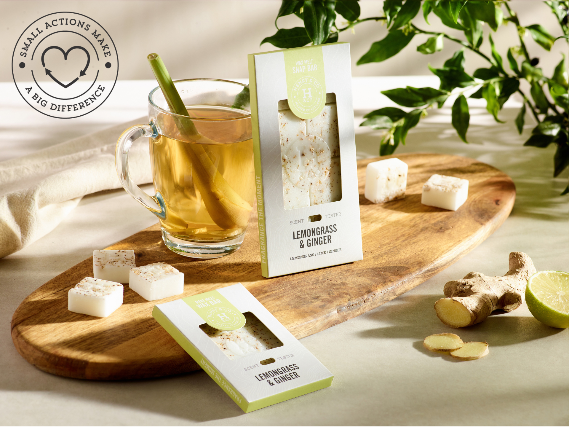 Our Wax Melt Bars are made with soya wax, fragrance oils, biodegradable inclusions, and sustainably packaged.