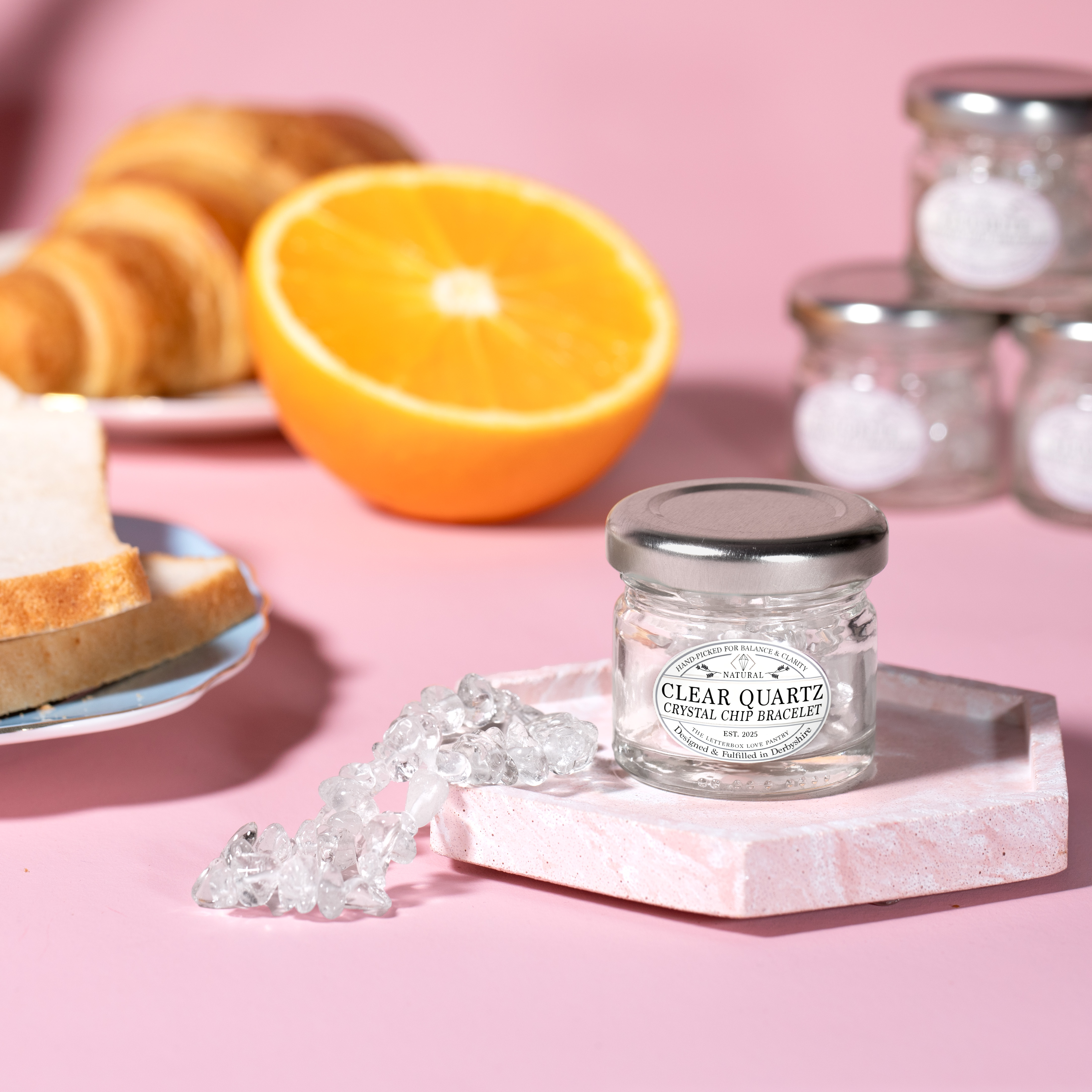 The Gem Jar Crystal Chip Bracelet Collection is a brand new concept for 2026, inspired by the rising consumer love for miniature products and food style gifting.