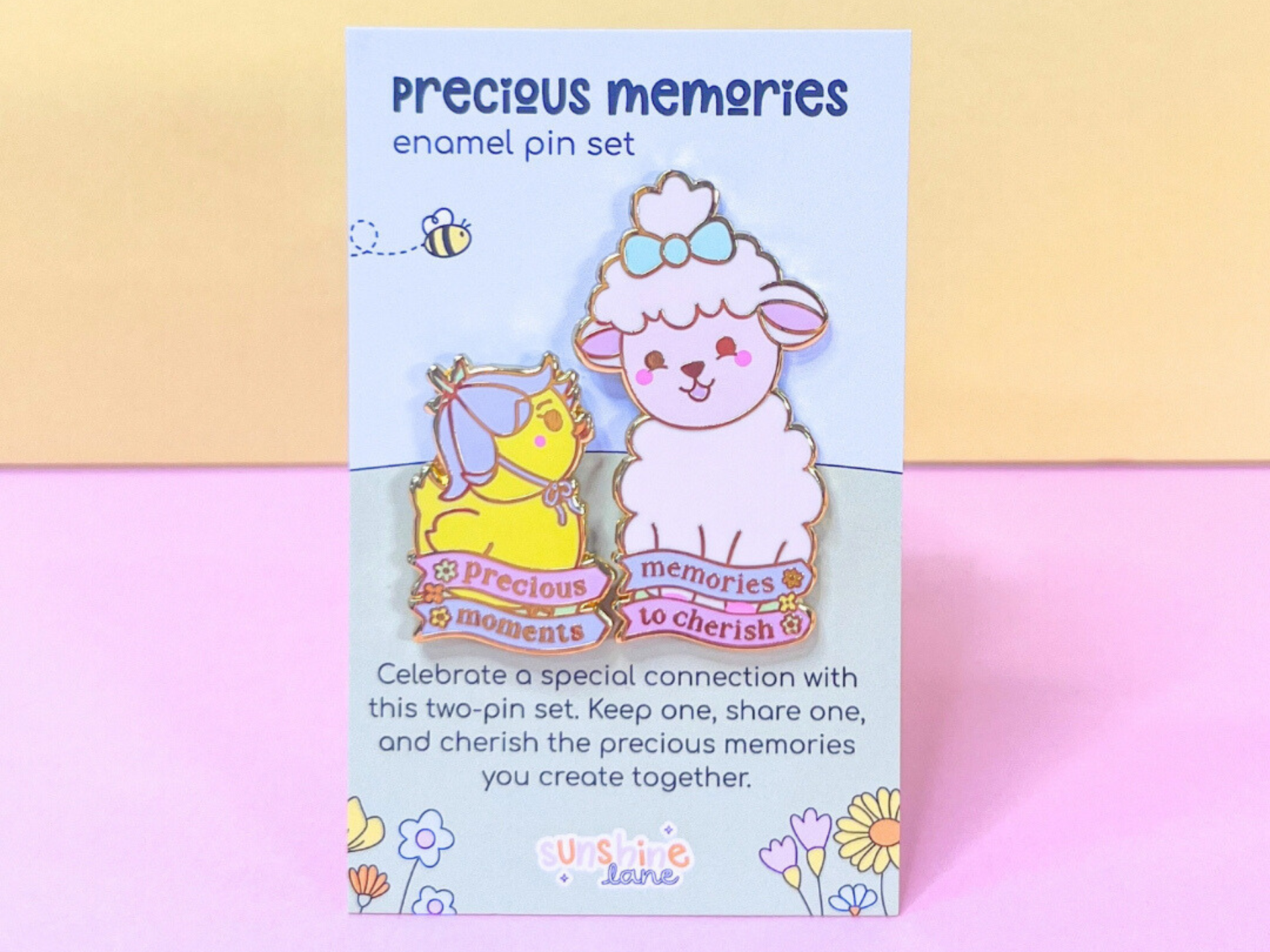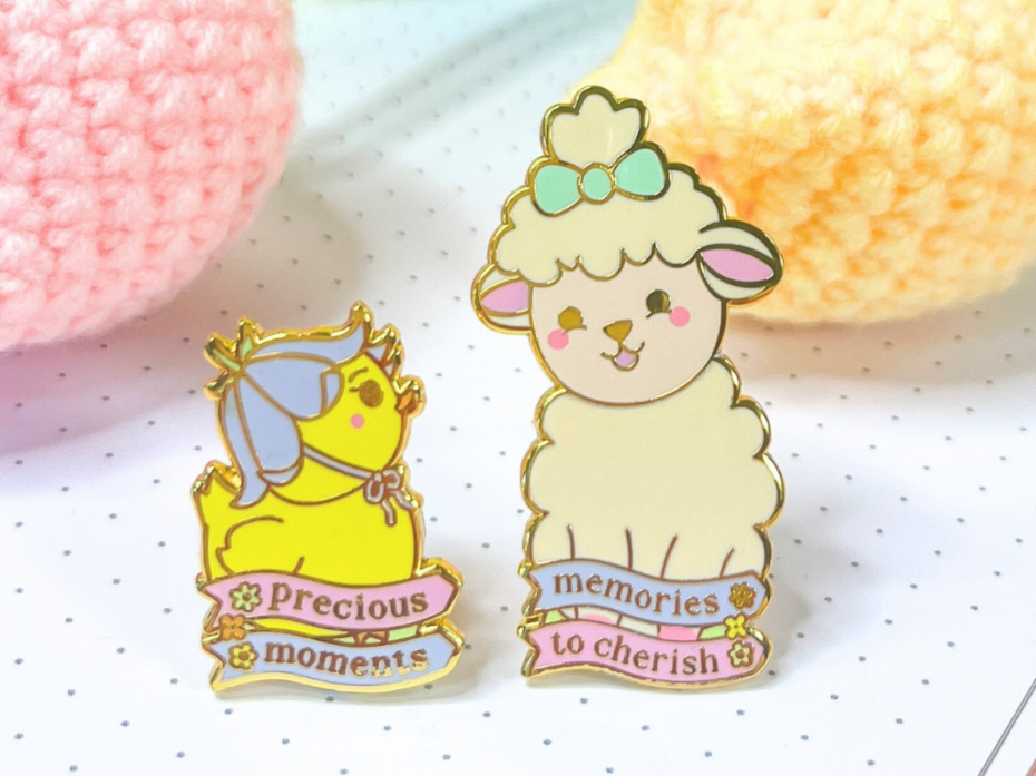A true highlight is the Precious Moments Enamel Pin Set, a fun reinvention of the best friend necklaces of the 90s. Featuring the adorable duo of Lottie the Lamb and Bluebell the Duck, this set is designed to celebrate any special connection. While perfect for sharing, the set is often purchased by customers who love the duo so much, they keep both pins for themselves! The customer can decide who Lottie and Bluebell are to each other, allowing the set to represent all types of cherished bonds. When worn together, they form a unified, heartfelt message, and when apart, each pin holds its own sweet sentiment.