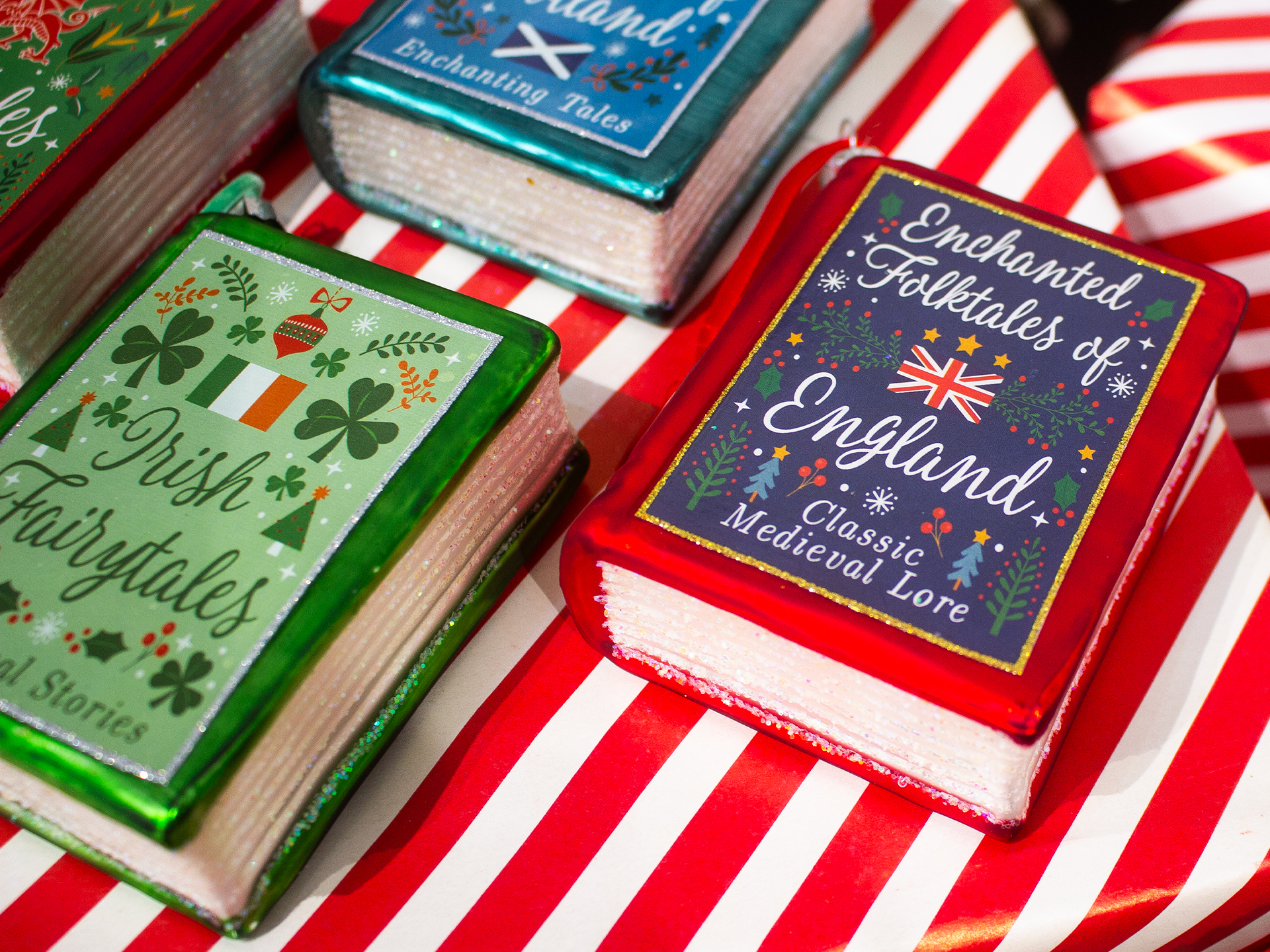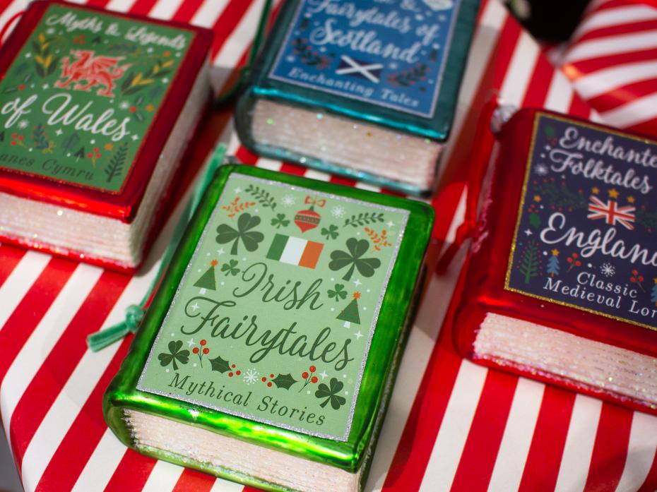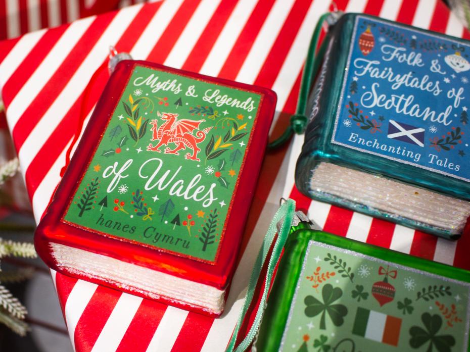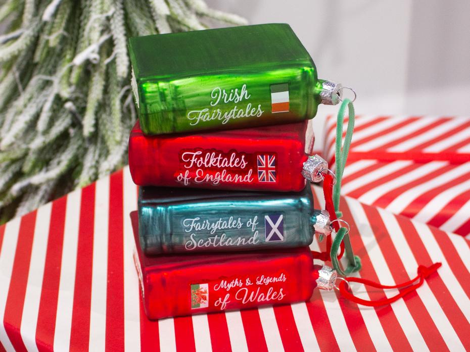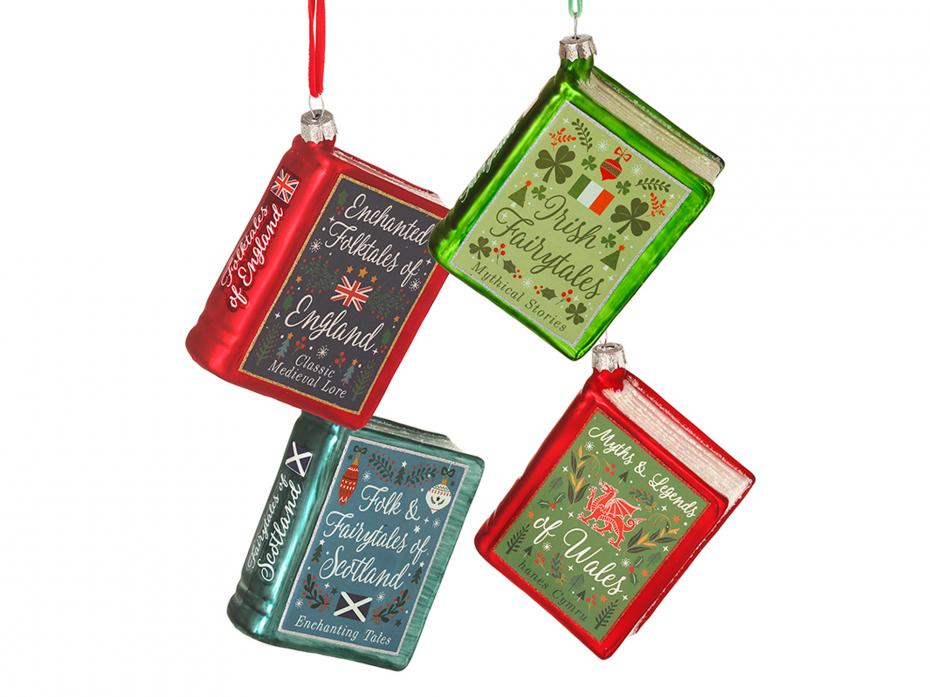 This exquisite set of 4 countries: English, Irish, Scottish + Welsh glass storybook decorations, are a whimsical take on their rich history in folk + fairytales. These beautiful decorations are uniquely + exclusively designed for Heaven Sends, and make a chic memorable tree decoration honouring your favourite countries. With a bespoke intricate design for each one and a subtle glitter finish, these delicate mini Christmas books really stand out from the crowd.