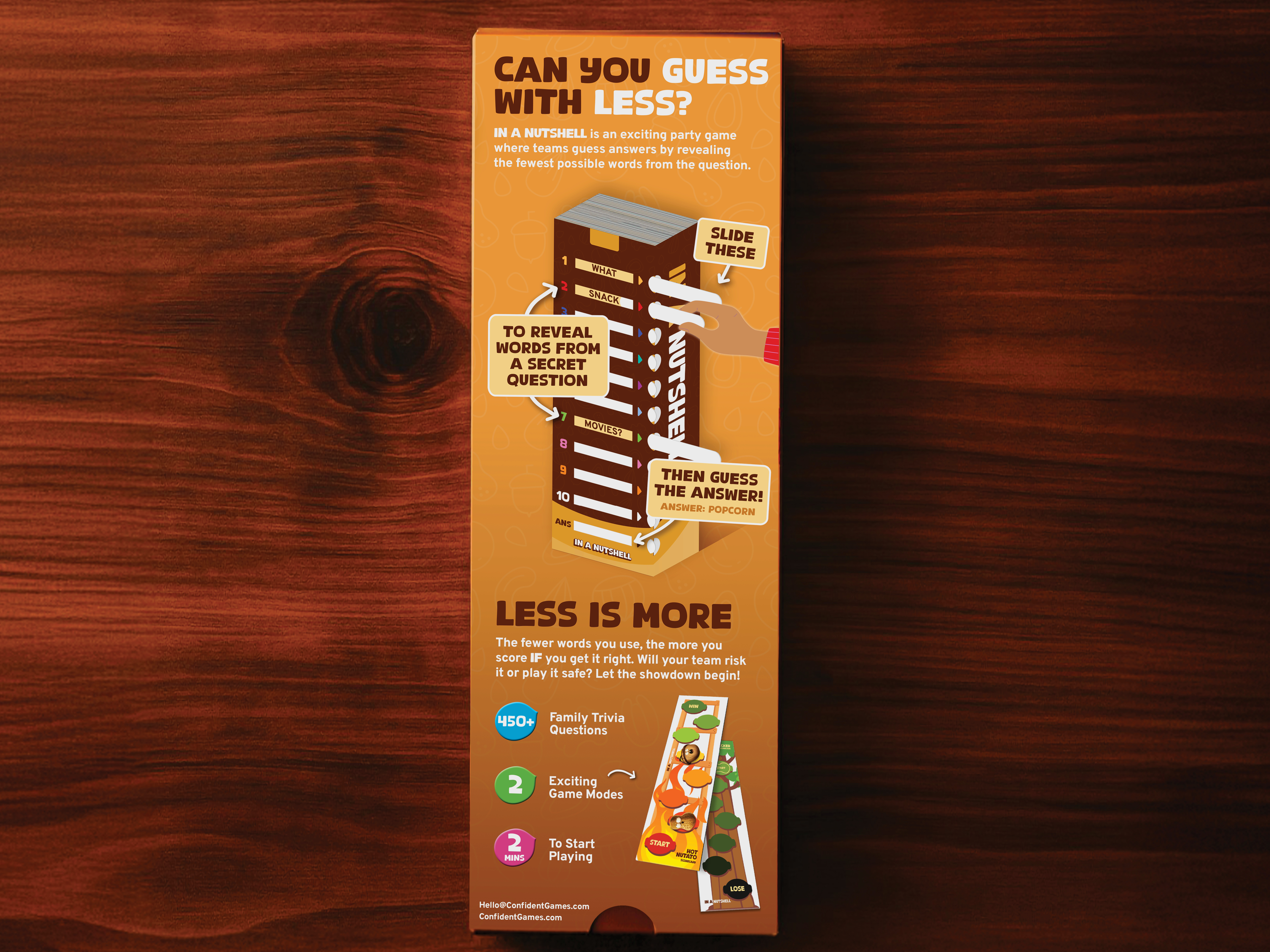 With two game modes to suit both casual and competitive players, plus over 450 questions for huge replayability, In a Nutshell brings fast, funny and memorable gameplay to families, adults and teens alike.