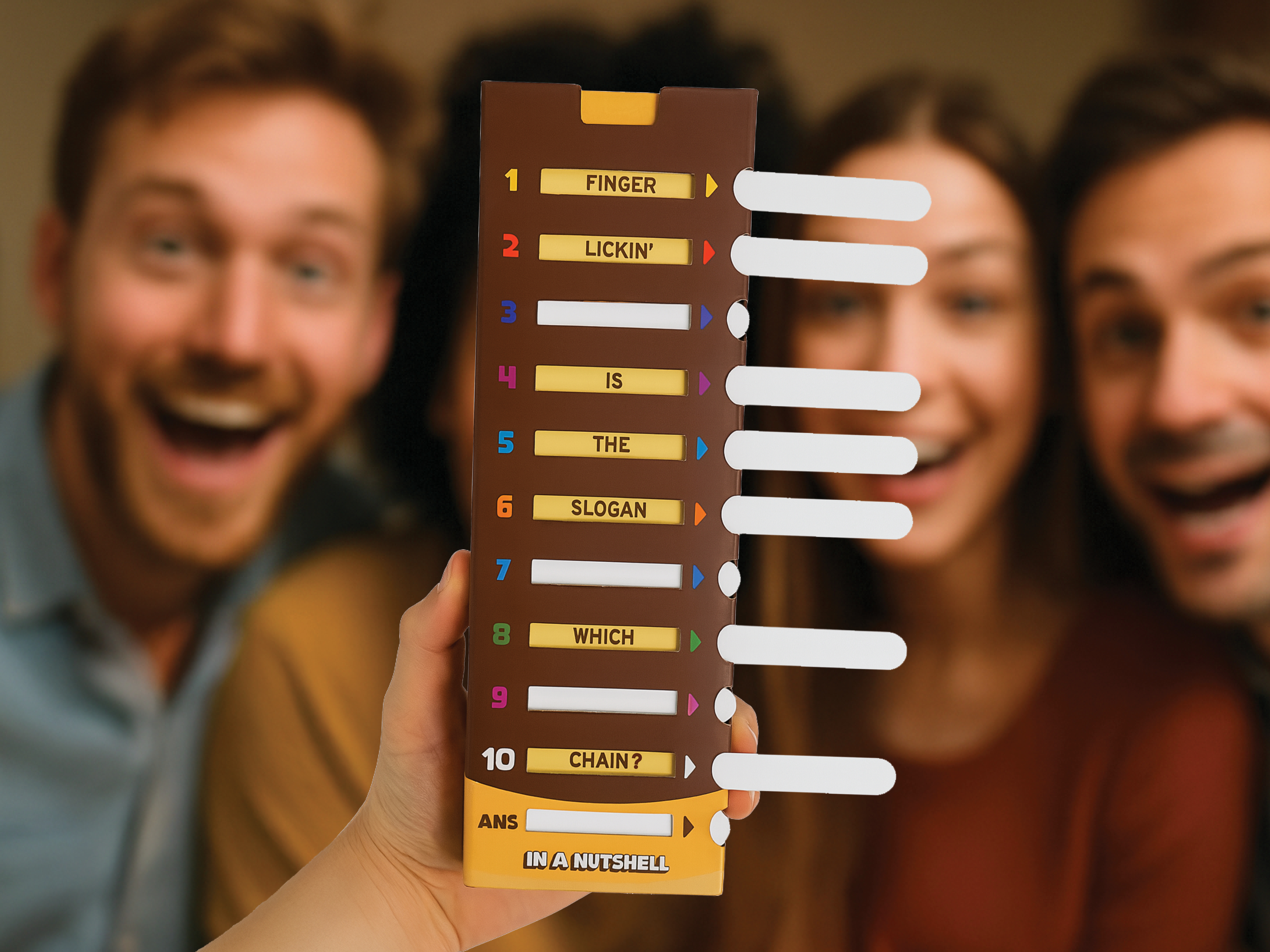 In a Nutshell is a cracking family word game with a unique sliding-window box that brings the questions to life. Reveal a hidden question one word at a time, keeping everyone on the edge of their seat as teams race to guess the answer using the fewest clues.