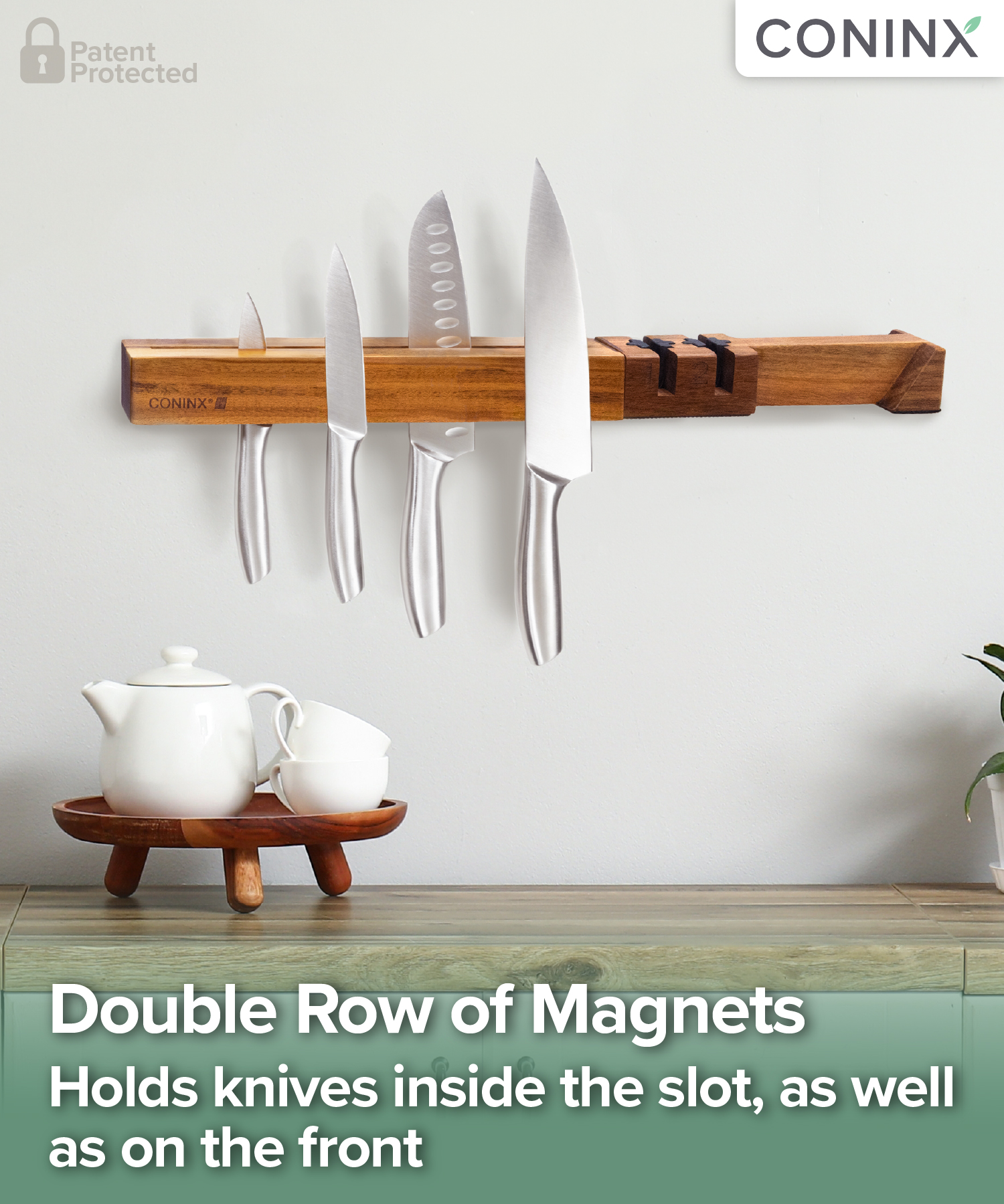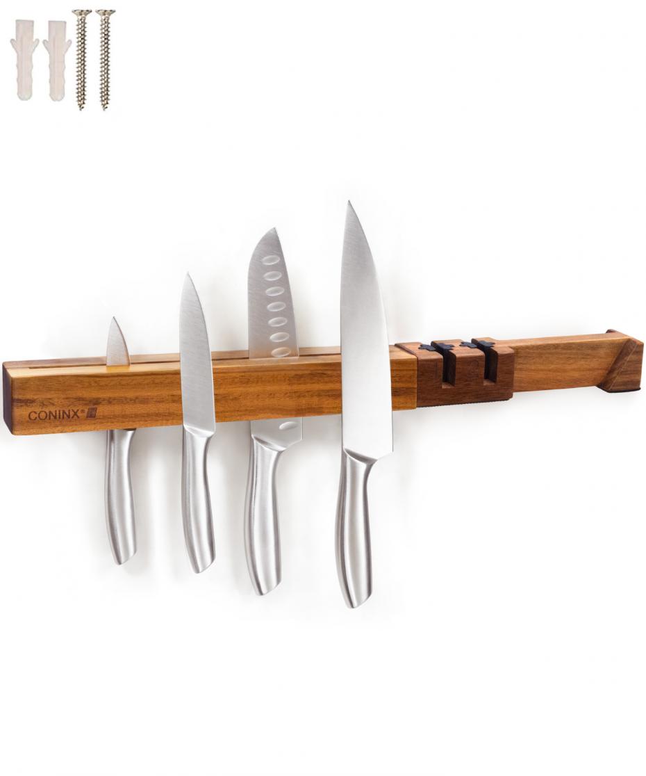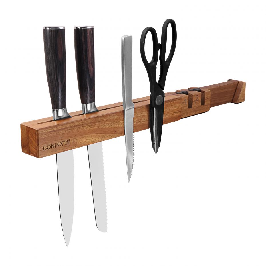 Coninx Magnetic Acacia Knife Strip with Sharpener