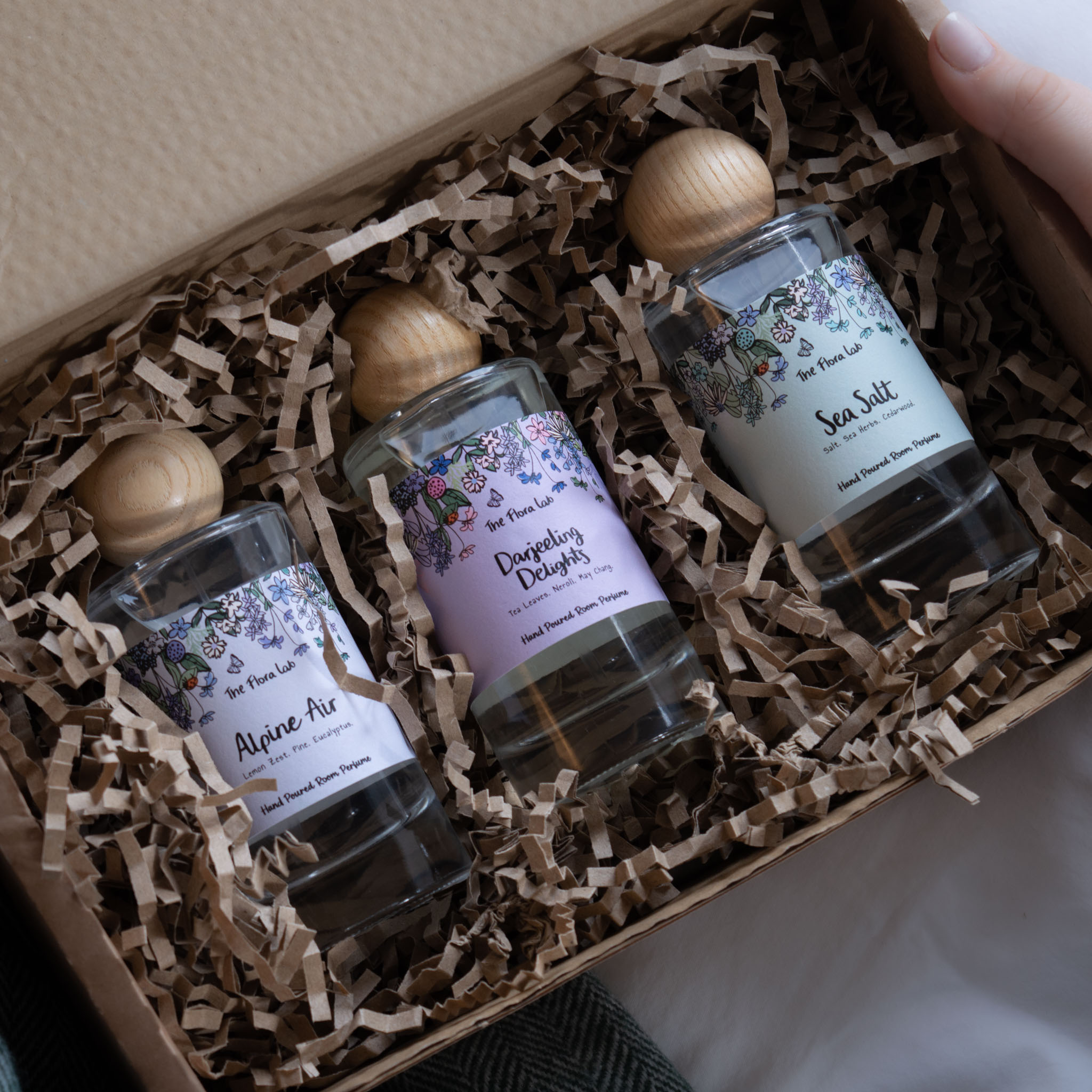 Each room perfume comes in a luxury glass bottle, finished with a wooden lid, meaning this room spray looks just as good on your shelves as it smells. It is adorned with our signature botanicals, representing the ingredients which are so prevelant in the Flora Lab range.
