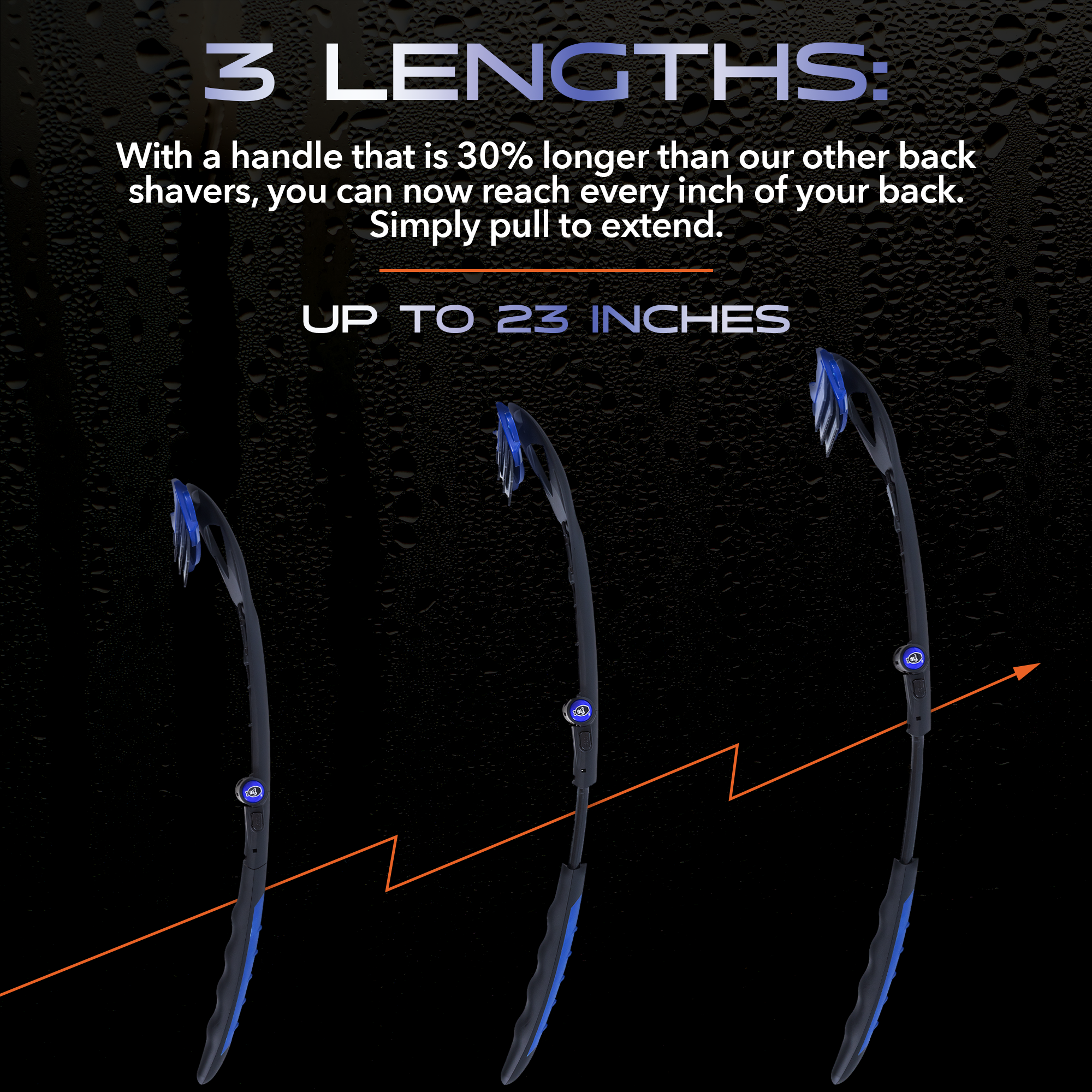 Engineered for versatility, the BakBlade 3.0 features a multi-angle extendable handle that’s 30% longer than leading competitors. Extending up to 23 inches, it allows you to reach every inch of your back comfortably. An ergonomic silicone grip, curved silhouette and dual-sided forehand/backhand hold allow for total control whether shaving or applying lotion.