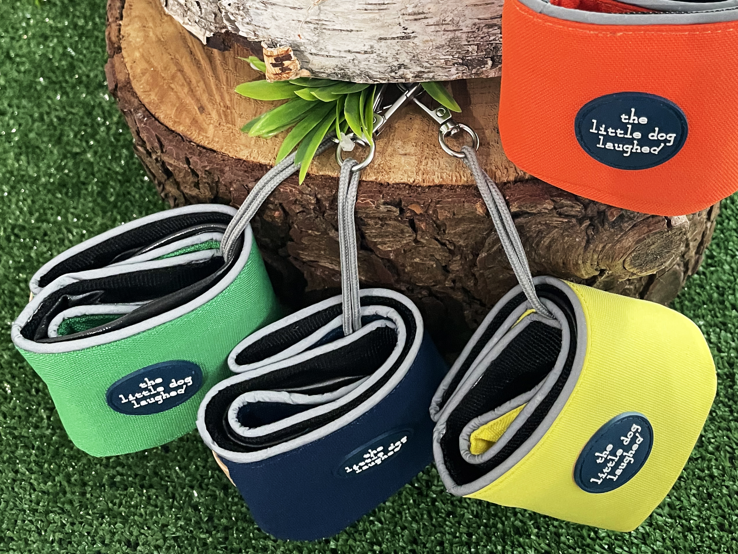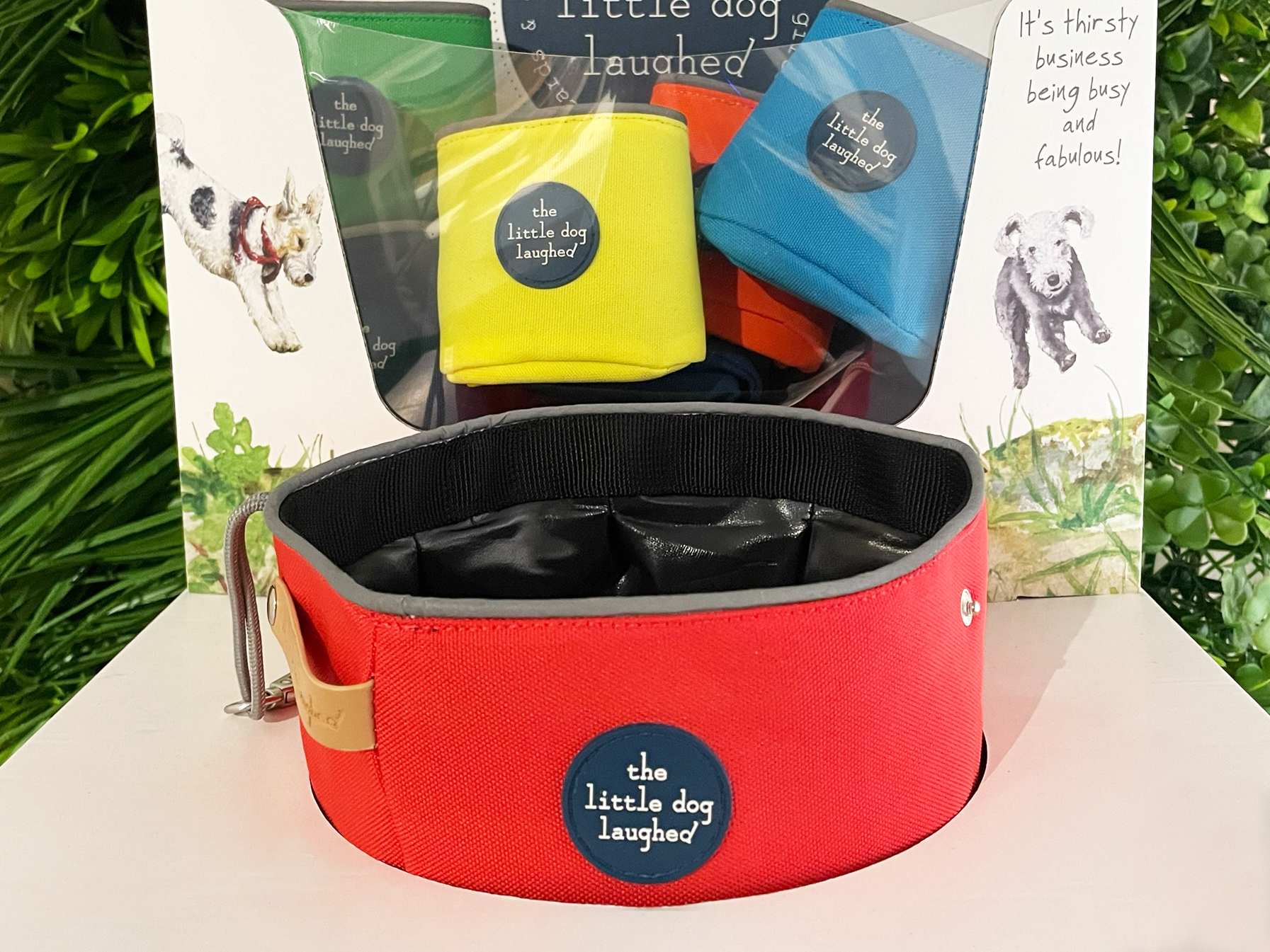 Available in 6 colourways to sit with our highly commended Dog Walking Bags from last years competition .These portable dog water bowls fold into a smaller pocket sized shape but is still the perfect circumference for canine muzzles of all shapes and sizes. Our furry beasties road test all of our dog accessories and these bowls have all met the Little Dog doggy seal of fit for purpose approval! With its water-holding lining and washable waterproof outer fabric, this travel bowl is a brilliant choice for anyone who wouldn’t dream of exploring the hills or walking the coast without their furry one.